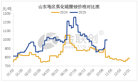 国庆节之后,硫酸铵市场持续整体上行,其驱动力主要来源于供应侧的显著收缩。己内酰胺企业,正面临严重的亏损困境,迫使多数装置降低负荷运行甚至短期停车检修的策略,这直接导致副产硫酸铵的产量同步下滑。同时在环保政策持续高压的背景下,部分焦化企业生产活动受到限制,焦化级硫酸铵供应亦呈现偏紧格局。由此可见,己内级与焦化级供应同时受限,使得市场整体货源供应能力明显减弱,为价格的上涨提供了坚实的支撑。与供应端的强势形成鲜明对比的是,国内需求面表现则相对疲软且呈现分化态势。农业需求方面,国内复合肥企业的整体开工率持续处于低位,对原料的实际采购跟进有限,并未形成规模性的集中需求,工业领域的需求则基本维持刚需且稳定。在此背景下,颗粒工厂为保证前期订单交付,集中需求对市场价格形成了强有力的拉动效应。尽管近期价格持续上行,但市场整体的采购心态仍然谨慎。高端价格风险加剧,操作者多以快进快出操作为主,囤货意向减弱,导致昨日市场交投僵持博弈。