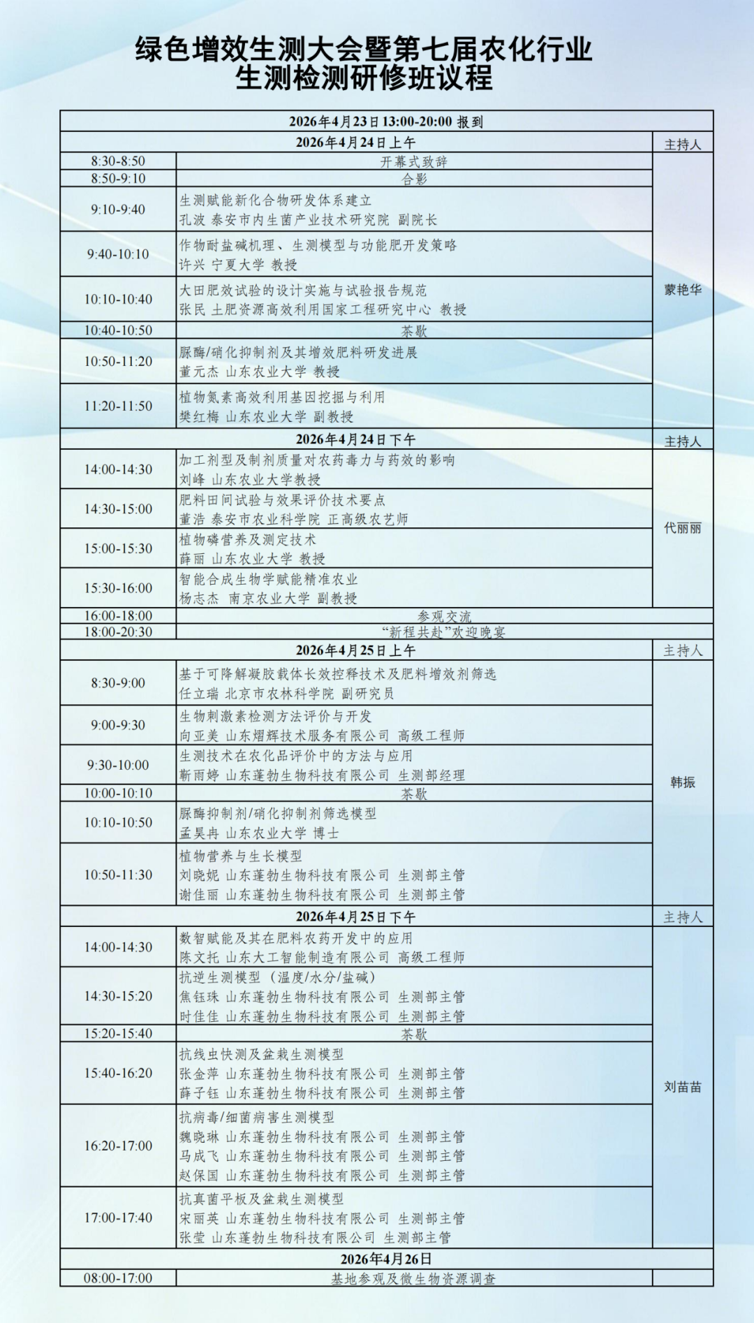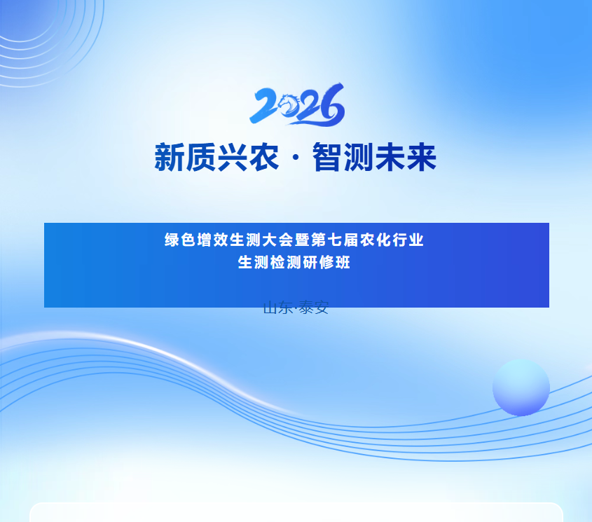 新质兴农・智测未来绿色增效生测大会暨第七届农化行业生测检测研修班山东·泰安会议前言绿色增效生测大会暨第七届农化行业生测检测研修班将于2026年4月24日-26日在山东泰安举办。本次大会以“新质兴农・智测未来”为主题,旨在破解绿色投入品研发中“机理不明、模型缺失、标准滞后”等核心难题,推动生测技术标准化、精准化发展。“新质兴农”锚定发展根基,呼应“十五五”农业新质生产力培育要求,明确绿色