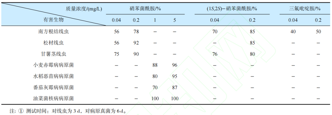 表5 硝苯菌酰胺及其(1S,2S)-对映体的生物活性①