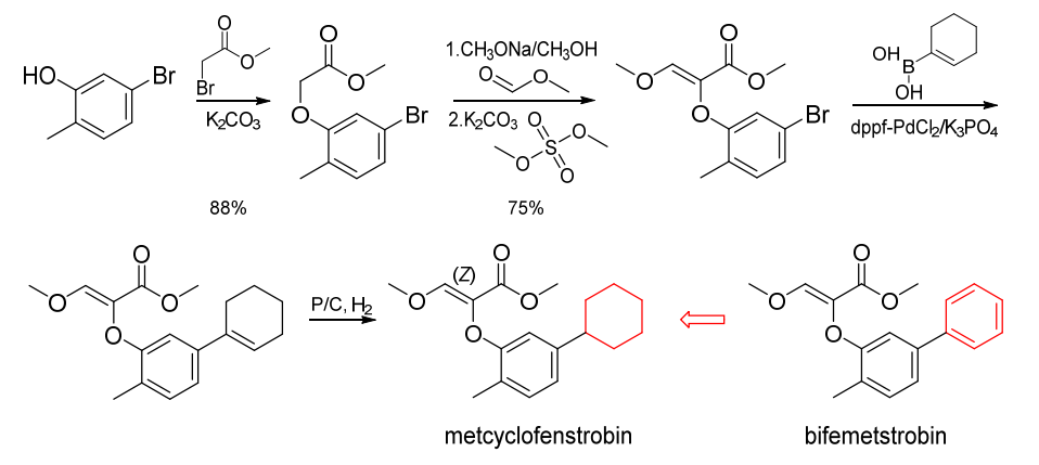 图17 Metcyclofenstrobin的创制思路和合成路线