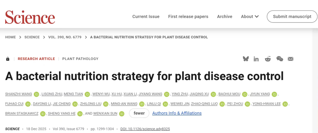 《科学》发表的评述文章,将这项研究与同期另一篇关于柑橘溃疡病致病机理的论文并置,揭示了不同病原菌获取营养的不同策略。