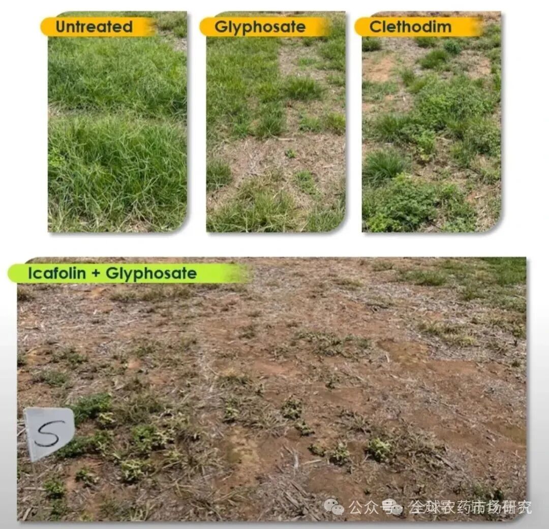 下图为异恶草酰胺甲酯与草甘膦混合施用后的效果