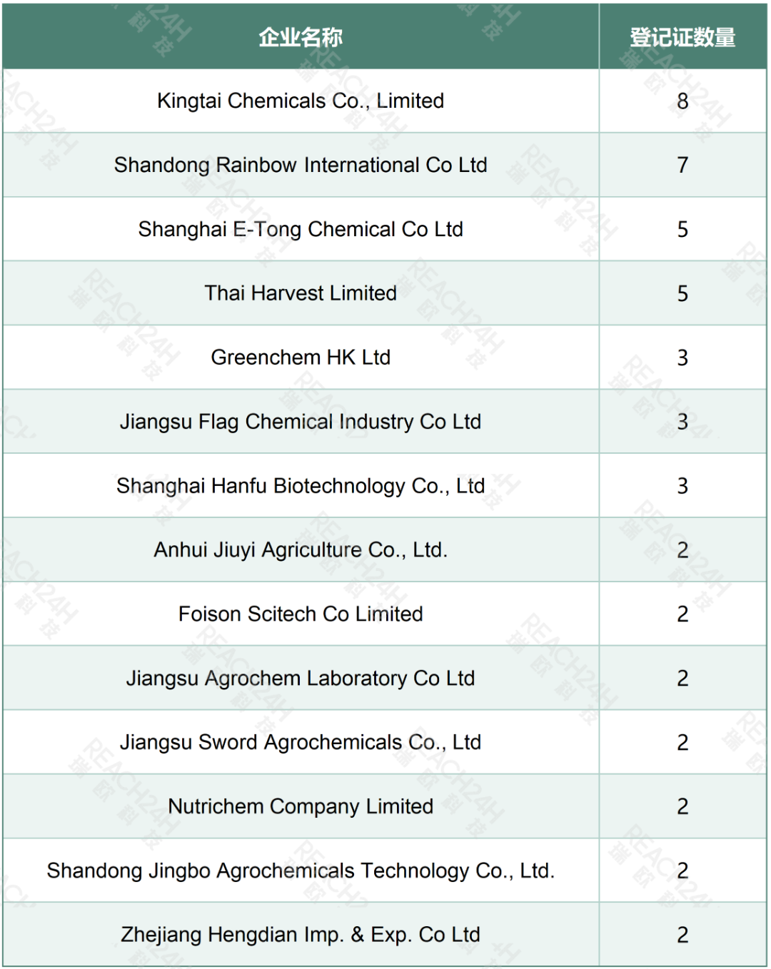 活性物质批准:中国企业占据半壁江山