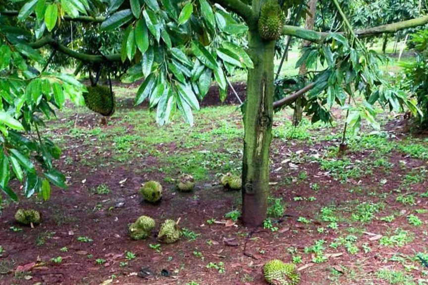 当地一名种植者诉苦称,自家果园近20吨榴莲已开始成熟并大量脱落,至今找不到销路。尽管收购价已从8万越南盾/公斤降至6万越南盾,果商仍然无意采收。