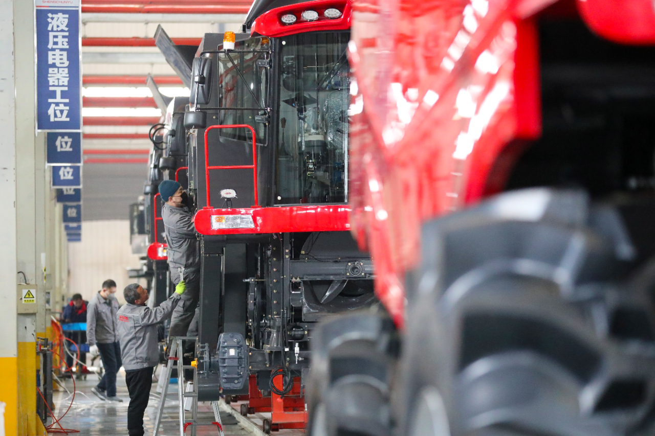 1月20日,在山东省高密市醴泉街道一家农机企业的生产线上一派繁忙。