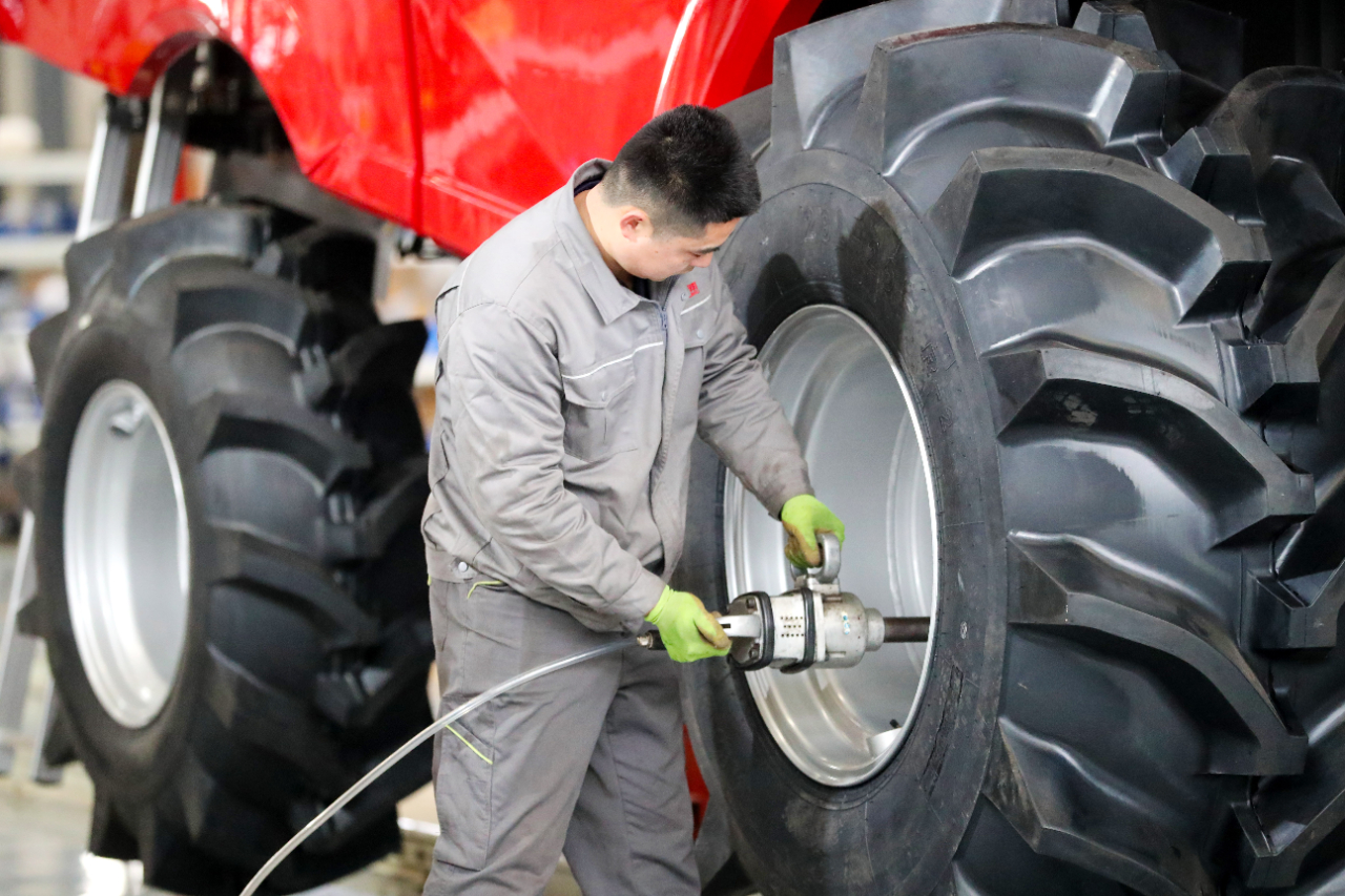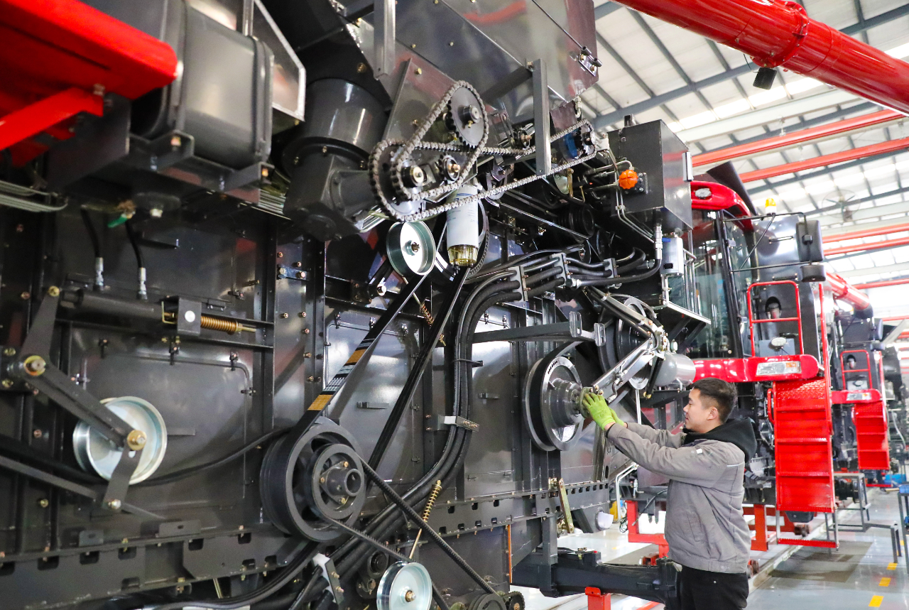 1月20日,在山东省高密市醴泉街道一家农机企业,工人在检测即将下线的农机产品。