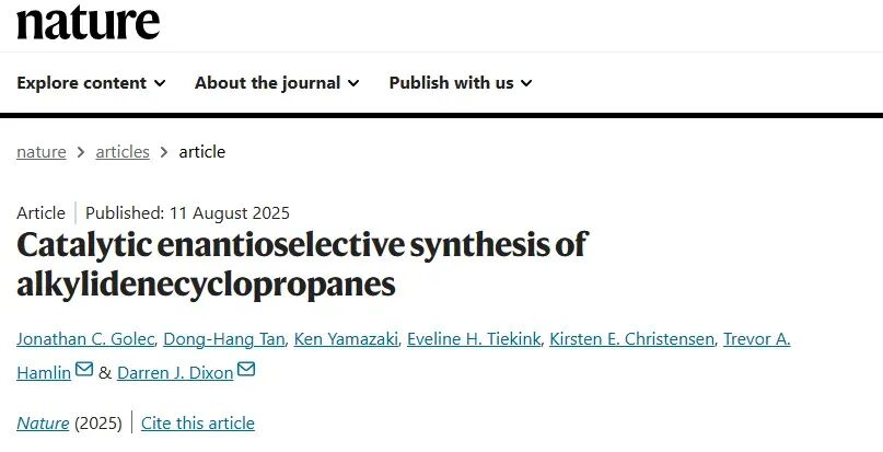 国际学界在该领域已涌现多项突破性成果:2025年,牛津大学Darren J. Dixon团队研发出手性膦亚胺催化环丙烯酯去共轭化方法,成功实现手性拟除虫菊酯的不对称合成,相关研究成果发表于国际顶级期刊《Nature》;2020年,剑桥大学Matthew J. Gaunt团队开发出钯催化烷基胺直接碳氢活化技术,达成(S)-苯锈啶的手性合成,研究论文刊发于国际顶级期刊《Nature Chemistry》。