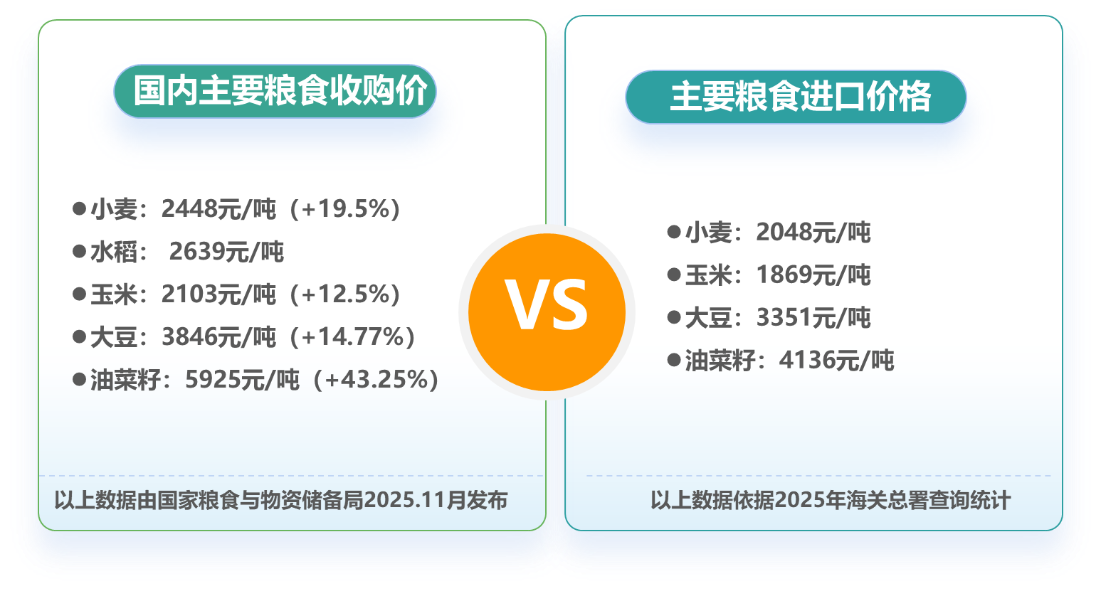 国际竞争力不足:我国大宗农产品国内成本高于国际均价12%—43%,2024年启动粮油作物大面积单产提升行动,2025年中央一号文件持续推进该行动,需靠科技提升作物单产、品质与安全。