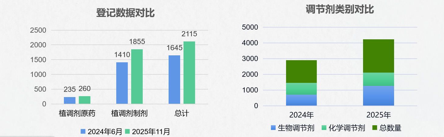 截至2025年11月,中国登记植调剂(含原药、单剂、复配制剂)共2115个,占农药登记总数4.06%。