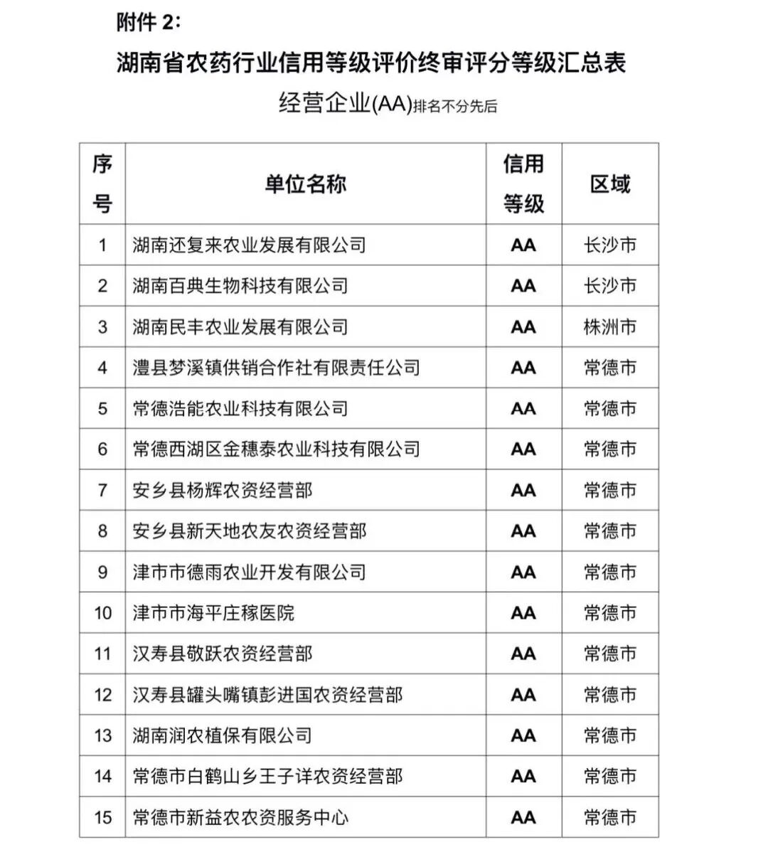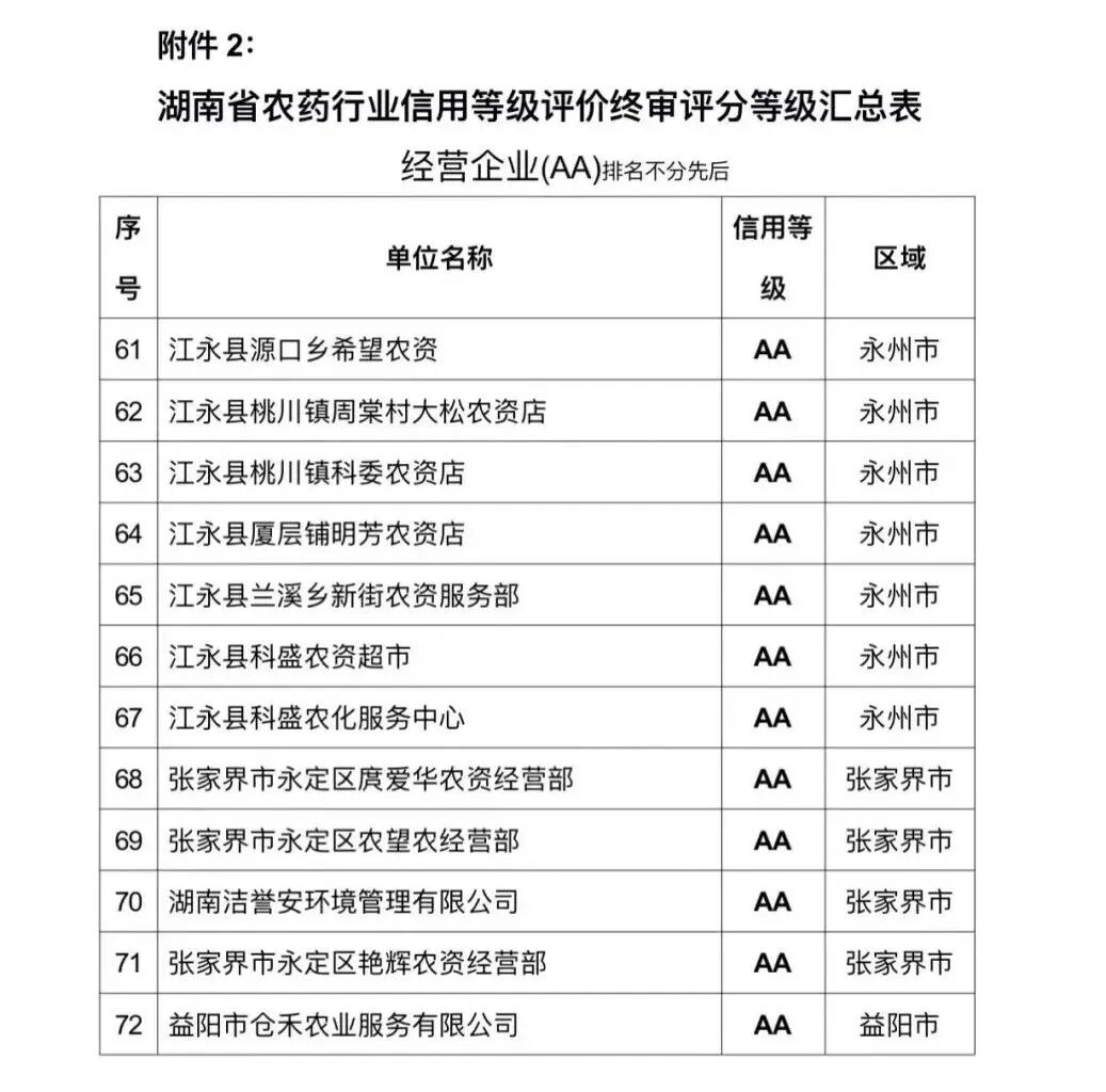 10月27日,湖南省农药协会发布2025年湖南省农药行业信用等级评价企业名单,超一百家湖南省农药公司以及农药店信用等级被鉴定,详细信息如下:、