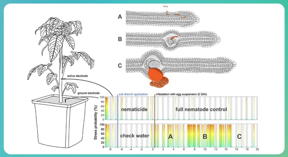 这一技术的突破得益于植物电生理学(electrophysiology)原理和机器学习技术的结合,通过实时“监听”作物在遭受线虫侵害时发出的电信号,并对这些复杂庞大的信号数据进行处理,研究人员得以监测和理解作物内部的运作情况,也能实时监测TYMIRIUM®技术在预防或治疗场景下的防护效果。