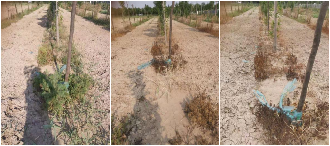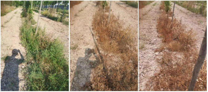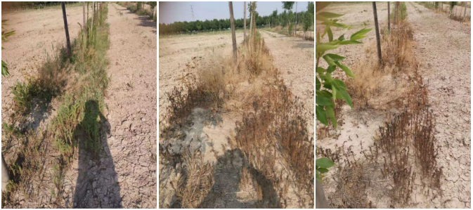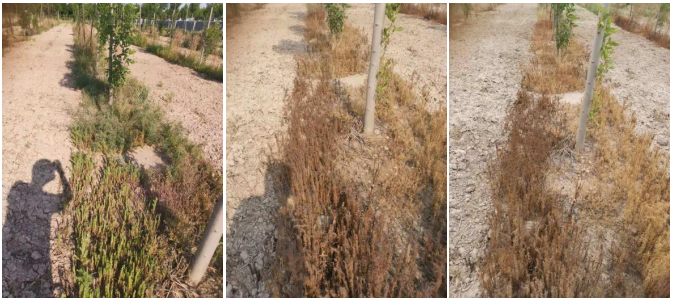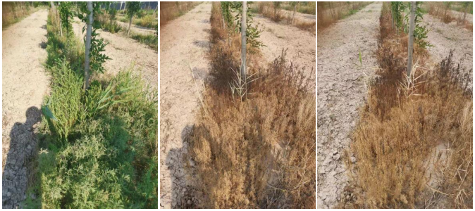 图3.(20%敌草快二氯盐SL+助剂,150+4ml/桶水)施药前、药后4天、药后7天药效情况