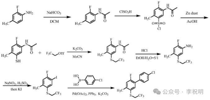专利CN119100959A报道了以2-氟-4-甲基苯胺和乙酸酐为起始原料,制备氟螨硫醚的方法,合成路线如下: