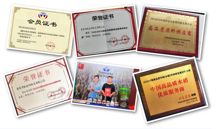 2022年,在原材料短缺、价格暴涨、疫情反复、经济疲软的高压环境下,公司通过加大研发投入,优化增建生产线,稳产保供,逆风前行;根据市场需求开发、引进、推出了进口鱼油、鱼小肽、悬浮钙剂、泡叶藻原浆等高质优价新产品,充分满足肥料增效添加和作物营养需求,广受市场欢迎与好评;并荣入中国无机盐工业协会生物刺激剂专委会,被行业协会和主流媒体评选为“高品质原料供应商”、“高品质水稻优质服务商”“中国特肥一线品牌大奖”等荣誉称号。