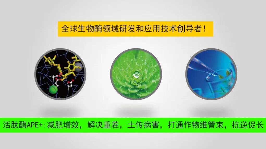 活肽酶APE+能够攻克各种作物种植顽症的技术密码是什么?活肽酶APE+配方科学全面,特别是产品里的固氮酶在防治前期黄化、后期早衰方面有特效;富含的小分子肽酶能打通作物维管束,使作物主动吸收营养更高效;PLT转录酶修复受损根系,使根损伤后再生;氧化还原酶能有效避免药害,降低农残;光合蛋白酶提升光合作用效率促进叶片产生更多光合产物,激发作物增产潜能;极端酶使作物在高温、干旱、涝灾、盐碱化、酸化等恶劣环境条件下实现“抗逆促长”。