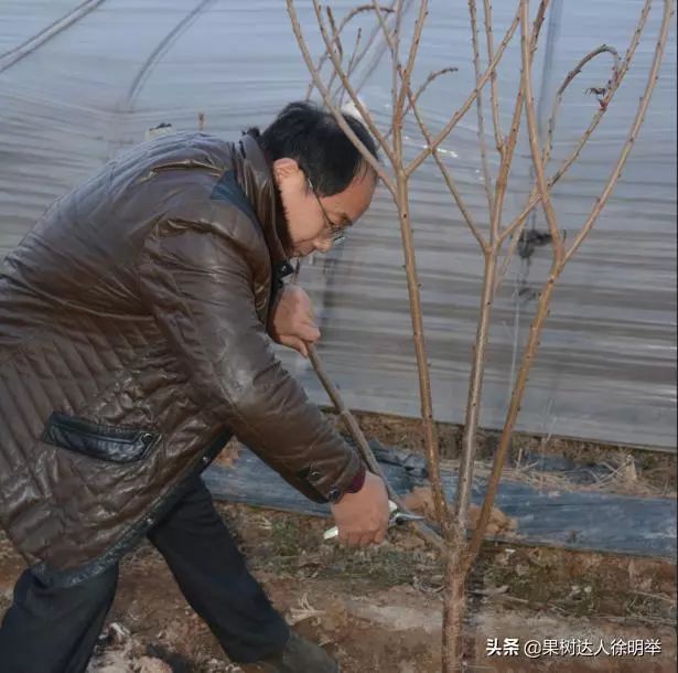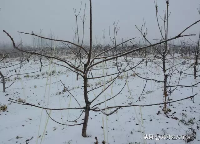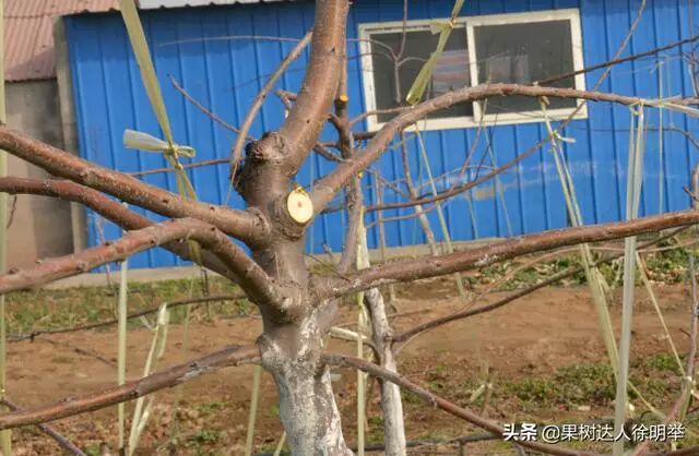对于上部主干延长头进行短截促发分枝,加速树形培养