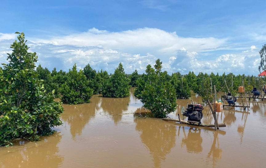 据“越通社”报道,近日,洪水席卷越南湄公河三角洲地区,当地榴莲、菠萝蜜等水果作物遭受重创,同塔梅湿地及西宁省等多地果园尽数淹没,数百公顷果树被毁,农户面临“血本无归”的困境。当地一位果农诉苦称,因持续暴雨冲毁防护堤坝,自家榴莲果园的积水深达两米,210棵榴莲树全部被淹,为此一家人已经连续一周不能入眠。两个月前他刚刚变卖所有家产并举债20亿越南盾(约合7.6万美元)购下这片果园,洪水前他又耗资数千万