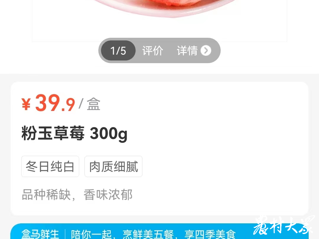 12月20日,“盒马”App上,粉玉草莓的价格为39.9元300克。