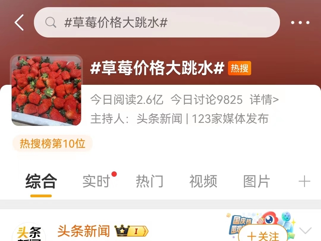 #草莓价格大跳水#的话题在微博引发网友热议。