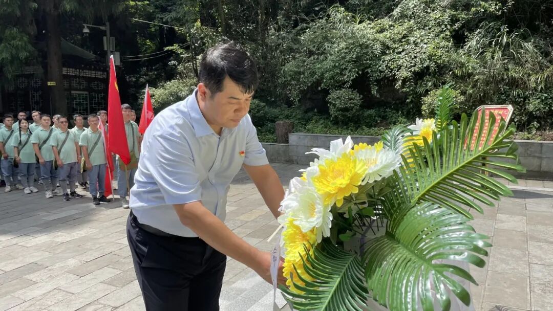 在娄山关战斗纪念碑下,西大华特党支部向娄山关战斗纪念碑敬献花篮祭奠英烈。随后党员代表在鲜红的党旗下,重温入党誓词,用铿锵有力的宣誓声表达共产党人的初心与使命。