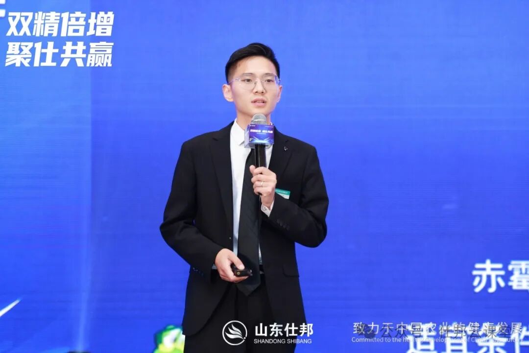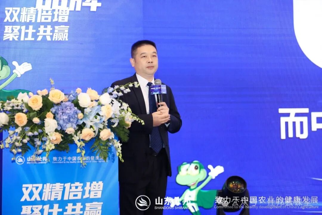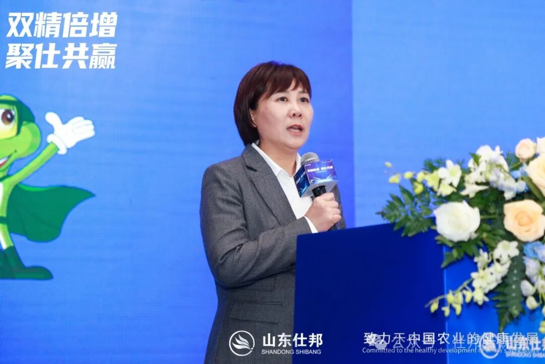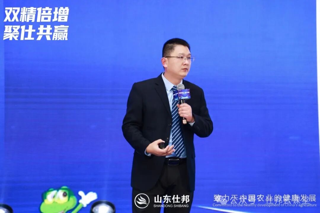 仕邦营销总监吴淑华从热点话题一品一证出发,对农资行业发展的新机遇、新变革、新未来进行了深入剖析,他以“卷”与“难”总结当前市场形势,深刻分析了行业所面临的压力与困境。针对挑战,他提出了七大应对策略,涵盖了证件补充、技术营销、渠道优化等关键领域,宣布了山东仕邦新的战略发展方向——“打造鲁豫苏皖冀国内第一品牌”、“开拓经作市场新局面”,为经销商们注入了坚定的信心与前行的动力,坚定了大家在变革中追求卓越的决心。