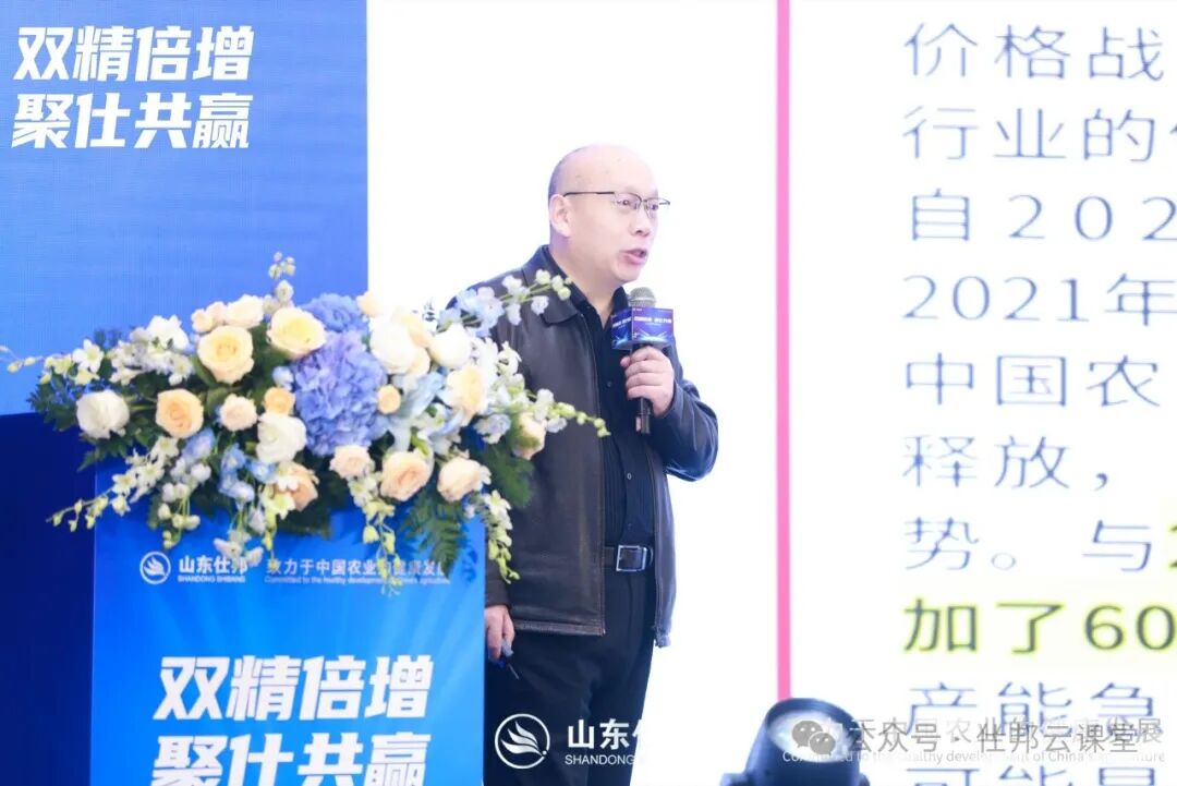 紧接着,山东省农资协会秘书长侯常青先生带来了主题为《农药新政对行业的影响与对策》的精彩分享。侯秘书长全面解读了农药新政的实施背景、政策措施及其深远影响,特别分析了土地流转与转基因技术对行业发展的重大影响,并强调,新政的核心目标在于规范行业发展、保障粮食安全,并推动农业绿色化转型。侯秘书长的发言为与会者提供了深刻的行业洞察与发展路径。