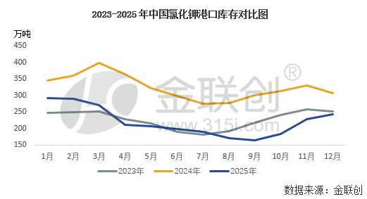 面对这一形势,政府积极发挥调控作用,通过实施“保供稳价”政策,释放国储货源,引导企业合理安排生产和供应,确保市场稳定。随着市场动态的调整,至10月份时,港口库存情况开始出现积极变化,库存量逐渐提升,新货源陆续到港,为市场带来了新的活力。同时,2026年国际钾肥大合同价格的确定,也为后期国内市场提供了一定的供应支撑。