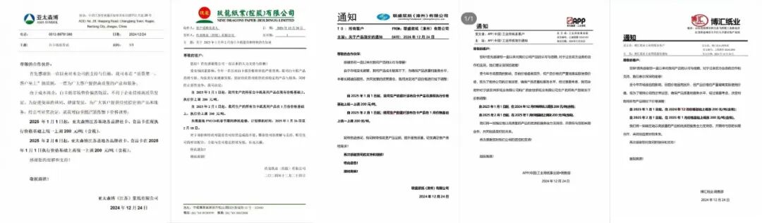 众多纸类企业也纷纷发起了涨价函,亚太森博、玖龙纸业、联盛浆纸、博汇纸业等纷纷发函调涨!
