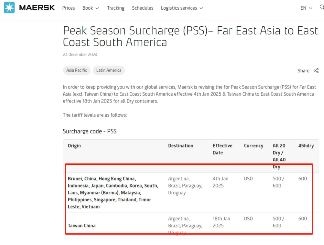 近日,国家发改委发布消息,自2025年1月2日24时起,国内汽、柴油价格每吨均上涨70元。折合成升价,92#汽油每升上调0.05元,95#汽油每升上调0.06元;0#柴油每升上调0.06元。新年开门红,成品油零售价也终于迎来了2025年首涨,新的一年,难道物价又是一场开门红吗?但相比普通车主和消费者而言,更为紧张的要数企业主了,新的一年成本预算,恐怕要随着物流运费、水电杂费和众多原材料的价格而再度被拉高。受美东码头可能发生的罢工事件影响,远东至美西和美东航线的运价持续上涨。远东至美西航线的运费预计将再增加1500美元,涨幅达到30%;远东至美东航线的运费则将增加1000美元,涨幅为15%。远东至美西的每FEU(40尺柜)价格上涨了9.1%;远东至美东的每FEU价格上涨了7.7%。截止到2024年12月27日,上海出口集装箱运价指数(SCFI)已经达到了2460.34点,相较于一周前的 2390.17 点上涨了3%。船公司们纷纷发布相关预警、计划征收工作中断附加费、罢工附加费等。马士基宣布,将对所有来自远东至墨西哥、中美洲、南美洲西海岸和加勒比海地区的干集装箱征收旺季附加费(PSS),自2025年1月6日起生效。还征收远东至南美东地区的所有干集装箱旺季附加费PSS。COSCO美西航线的40尺柜子,运价上涨1600美金,高达6000美金以上,美东航线则上涨1000美金,达到7000美金以上。以星的美东美湾预计涨价一千多美金,同样高达7000美金以上。阳明海运也将上调综合费率附加费(GRI),美西和美东每40英尺集装箱的调涨约为2000美元。联邦快递宣布从1月6日起,对美国国内及进出口服务实施平均5.9%的涨价,同时调整多项附加费用。联合包裹(UPS)启动了近25年来最大幅度的价格调整,除基础费率上调外,还提高了SurePost服务资费和配送附加费。美国邮政也计划从1月中旬开始上调服务价格,并对特殊货物征收额外费用。FedEx(联邦快递)美国、美国出口和美国进口服务的包裹和货运费率将自1月6日起平均上涨5.9%;DHL的运费也将从明年1月1日起上涨,涨幅在4.9%—6.9%。亚马逊宣布,自1月15日起,多渠道配送费用(MCF)将会平均上涨3.5%。