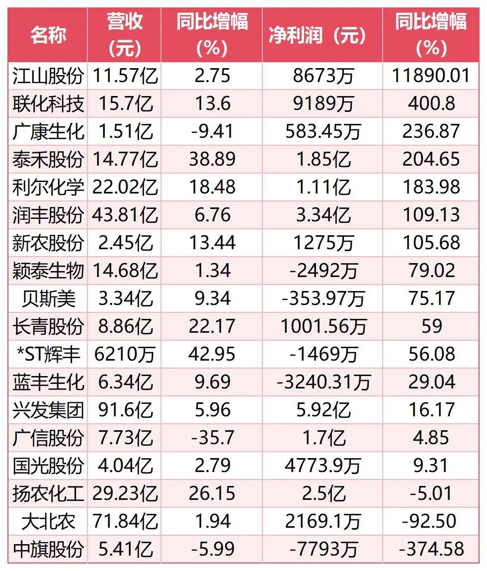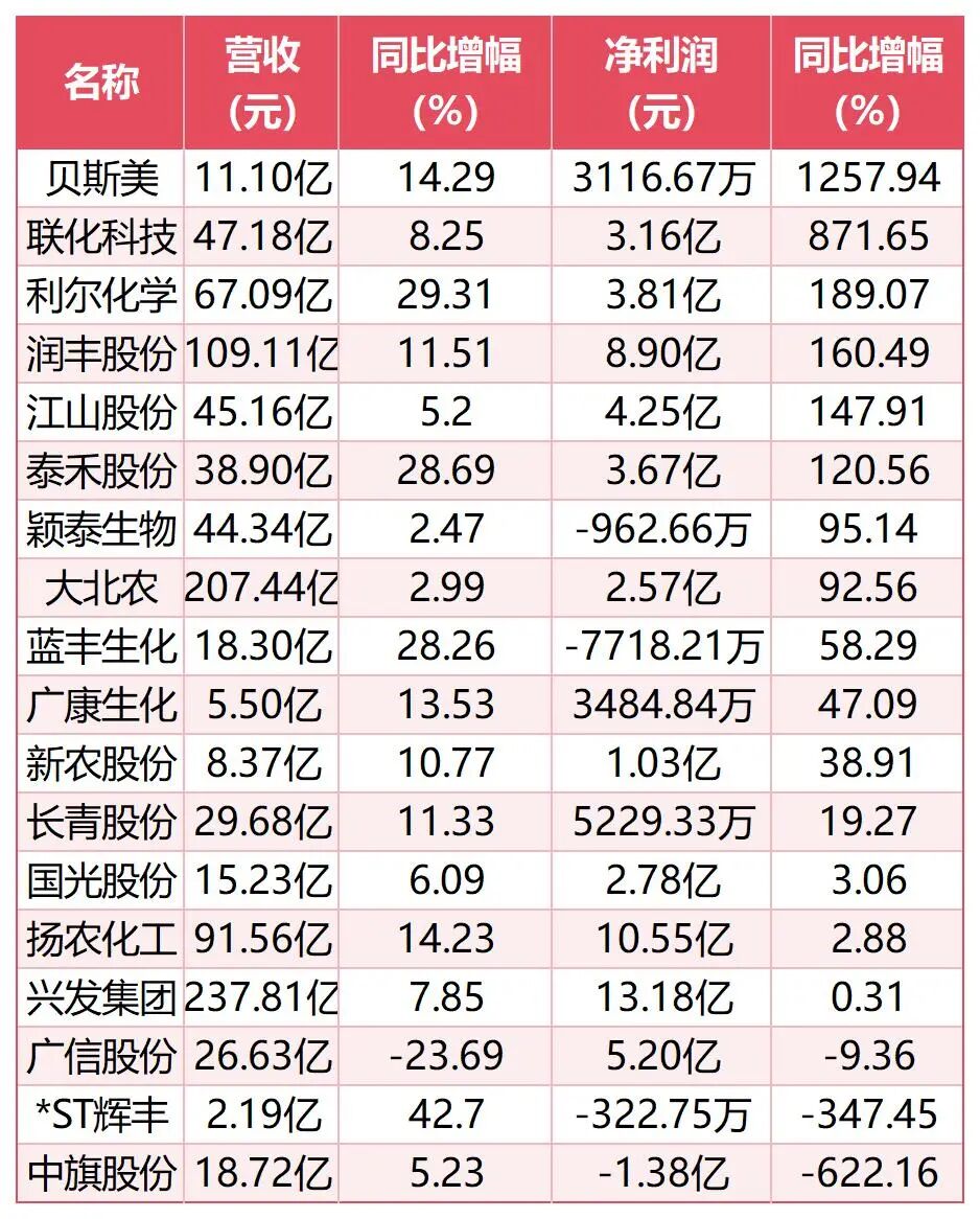 18家农药上市企业第三季度报告已出!净利润最高增幅达11890%