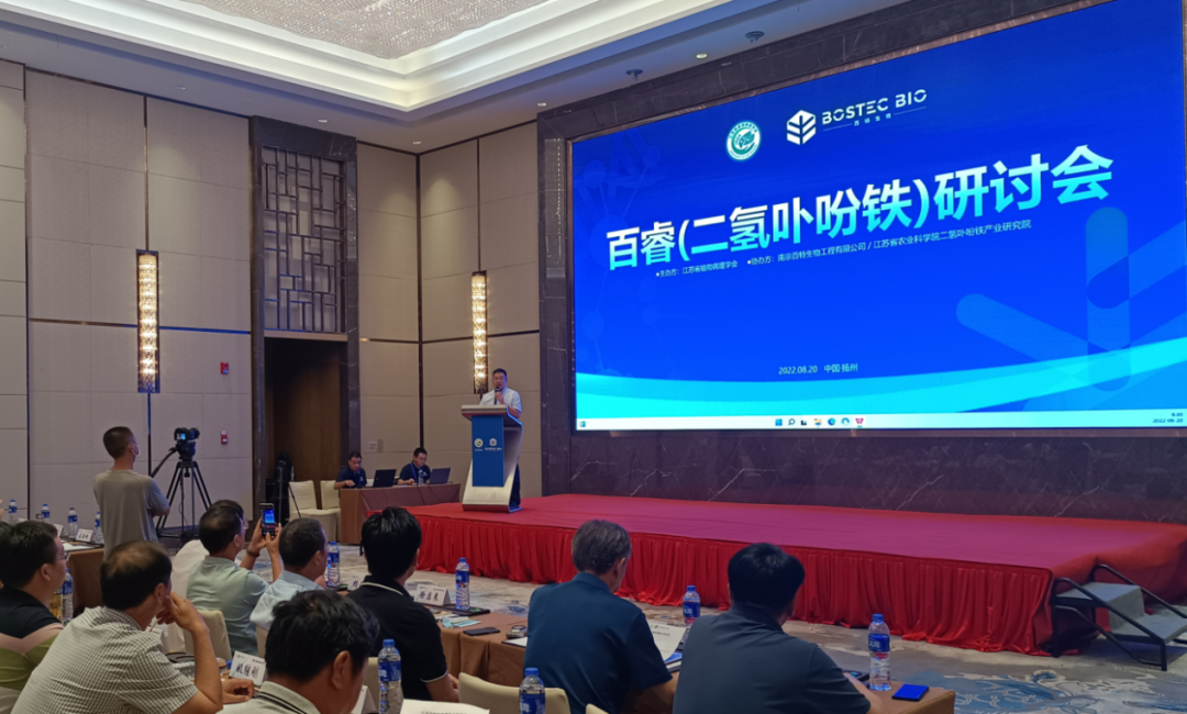 近日,由江苏省植物病理学会主办、江苏省农业科学院二氢卟吩铁产业研究院和南京百特生物工程有限公司协办的二氢卟吩铁研讨会在扬州市召开。江苏省农学会常务副理事长、江苏省农业科学院副院长孙洪武、江苏省植物病理学会理事长王源超、江苏省农技推广总站站长管永祥等领导应邀出席本次研讨会,会议由江苏省植物病理学会秘书长魏利辉主持。