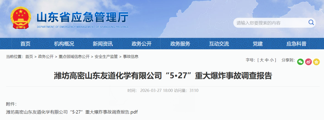 警钟长鸣!友道化学“5·27”重大爆炸事故调查报告公布!
