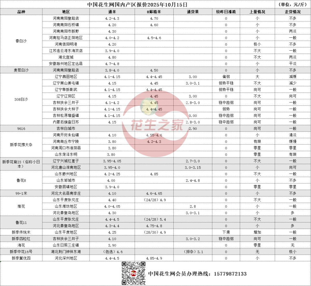 辽宁产区昌图县付家镇308白沙通货米收4.1-4.15左右,8个筛精选米4.4-4.45左右,通货果3.0左右,色选果3.8左右;阜新彰武地区新季308白沙通货米收4.1-4.15左右,8个筛精选米4.4-4.45左右,花育23(俗称小日本)白果3.6-3.7左右;兴城红崖子新季花育23(俗称小日本)通货米收3.95-4.05左右,通货果收2.7-3.0左右;锦州义县地区花育23(俗称小日本)成品果好的3.6-3.65左右,通货米收3.85-3.9左右,308白沙通货米收4.1-4.15左右;基层供应量加大,经销商观望情绪略显,采购积极性减弱,交易普遍减缓,价格弱势,以水分论价为主;