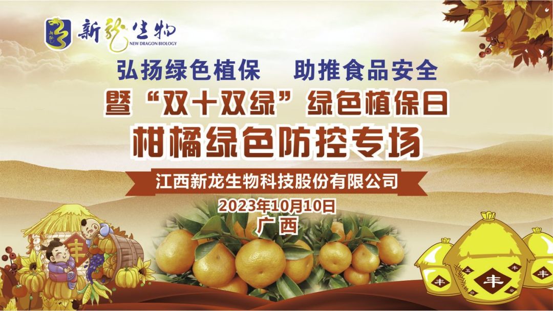 2023年新龙生物“双十双绿”绿色植保日“柑橘绿色防控专场”活动上,相关专家教授将详细介绍分享新龙生物柑橘绿色防控集成方案,下方扫码收看详细内容~