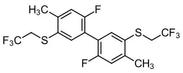 氟螨双醚英文通用名bisulflufen,CAS登录号1922957-45-6,分子式C18H14F8S2,相对分子质量446.42,化学名称2,2′-二氟- 4,4′-二甲基-5,5′-双[(2,2,2-三氟乙基)硫烷基]-1,1′-联苯。化学结构式如图1。