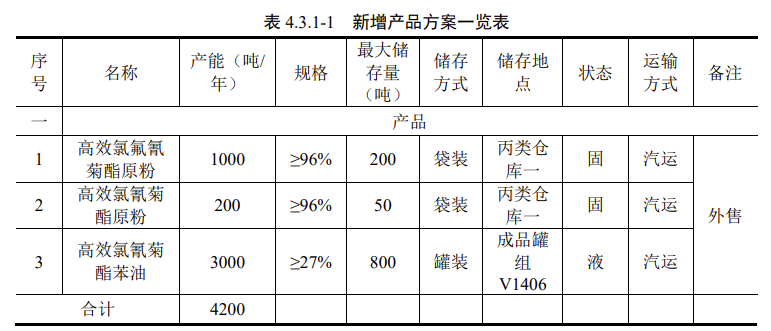 建设规模:年产4,200吨拟除虫菊酯系列产品建设项目;