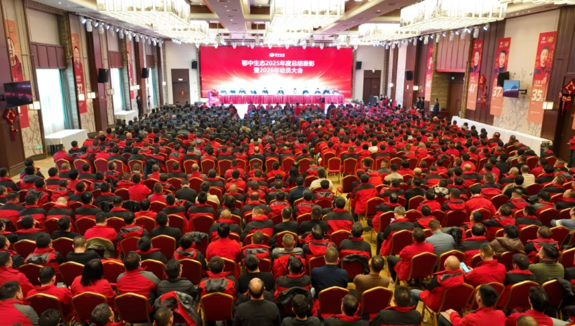 1月27日,湖北鄂中生态工程股份有限公司2025年总结表彰暨2026年动员大会在荆门凯旋国际酒店隆重召开。公司董事长杨才超、总经理杨华登及全体经理班子出席。各分、子公司经理,部室负责人,生产厂厂长,受表彰的优秀干部员工及全体营销人员等共800多人参会。大会由副总经理朱玉军主持。副总经理陈柏就提升产品质量与服务水平作表态发言,销售总监孙亮围绕市场拓展与销量提升举措做了工作汇报。随后,副总经理陈柏、杨