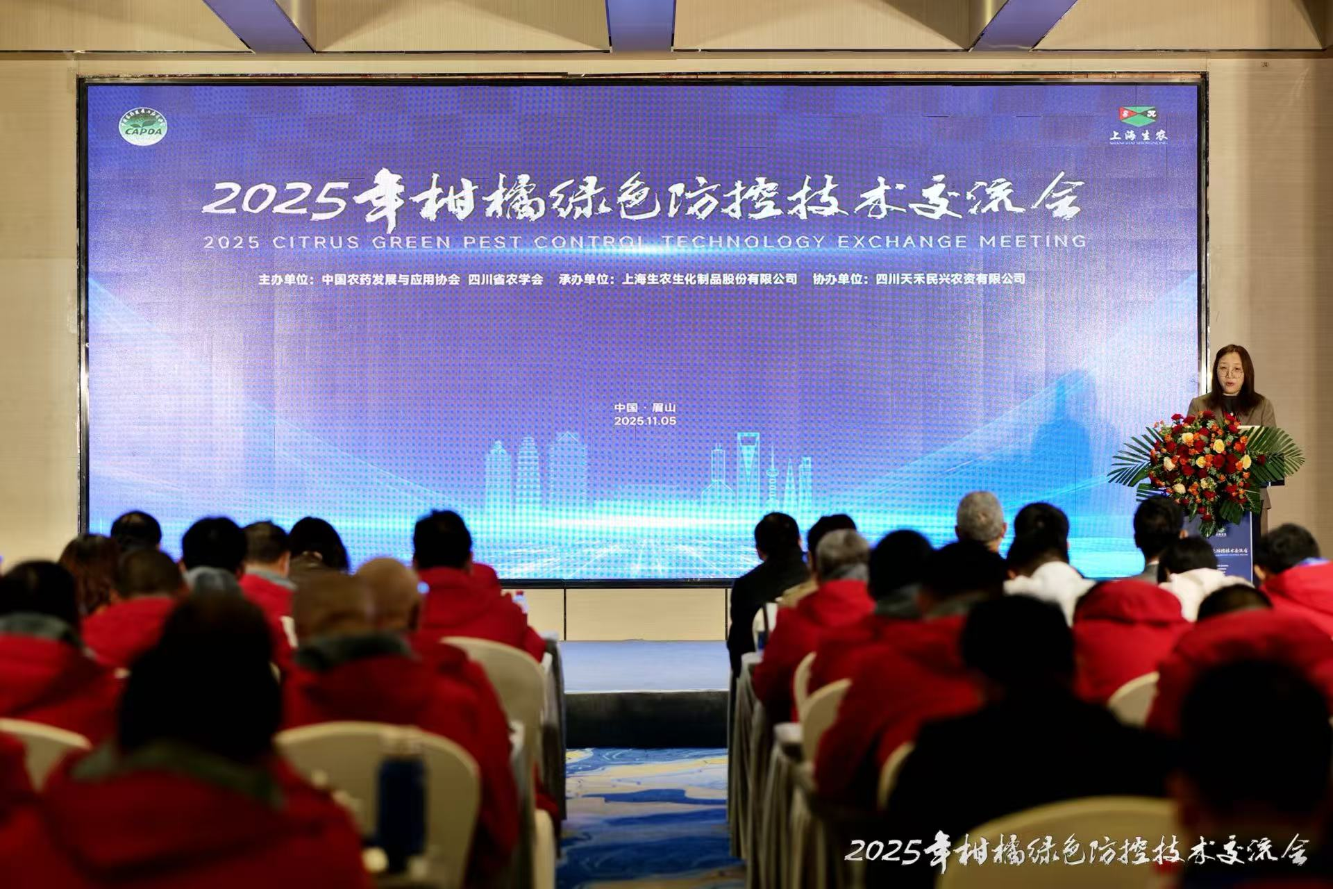 为深入推进农药科学安全使用,提升柑橘病虫害绿色防控水平,助力柑橘产业高质量发展。11月5日,在东坡故里,晚熟柑橘之乡生态眉山,2025年柑橘绿色防控技术交流会盛大召开。本次交流会由中国农药发展与应用协会、四川省农学会主办,上海生农生化制品股份有限公司承办,四川天禾民兴农资有限公司协办,来自全国各地近200位优秀服务商共同见证了这一荣耀时刻。中国农药发展与应用协会副会长王凤乐主持中国农药发展与应用协
